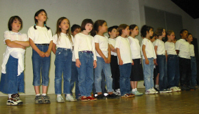 plus jeunes choristes noueillois sur la scène de l'Orangerie, à